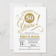 Convite de Aniversário de 50 Anos de Casamento. Design elegante em dourado brilhante falso e branco. Possui tipografia moderna em fonte script. Saúde por 50 anos! Pode ser personalizado para qualquer ano. Por favor, envie mensagem se precisar de mais personalização.