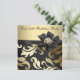 Convite de festa de aniversário de cinquenta anos preto e dourado elegante com damasco. Adicione seus detalhes na frente e/ou no verso deste convite de festa preto e dourado adicionando os detalhes do seu evento, estilo de letra, tamanho e cor da letra e a redação.