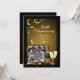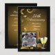 Adicione sua foto a este convite de aniversário personalizado elegante para 50 anos ou qualquer outro ano. Convites bonitos e festivos apresentam design preto e dourado com padrão de redemoinho elegante e duas taças de champanhe espumante com garrafa de champanhe com tonalidade verde para celebrar o grande dia dos convidados de honra.