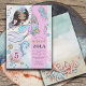 As meninas adoram coisas mágicas. Este convite de festa de aniversário de 5 anos com sereia e golfinho sob o mar vai deliciar os convidados com um charme caprichoso, apresentando sereia, golfinho, tartaruga e conchas, em cores bonitas de rosa, azul, verde e roxo claro. Um mundo subaquático de magia e mistério.