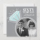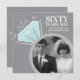 Convide amigos e familiares para uma festa especial de aniversário de 60 anos de casamento ou jantar comemorativo com essas convites com duas fotos e um anel de eternidade em grafismo cinza, azul claro e branco brilhante. Personalizado com suas próprias fotos do dia do casamento e uma foto atual no verso, e adicione suas próprias palavras de celebração, data e local da festa. Outros itens correspondentes disponíveis. Arte e design original do anel por www.mylittleeden.com na zazzle.