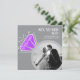 Convide amigos e familiares para uma festa especial de aniversário de seis anos de casamento ou celebração de jantar com esses convites com um anel de eternidade gráfico com brilho cinza, roxo ametista e branco, e duas fotos de então e agora. Personalizados com suas próprias fotos do dia do casamento do casal e uma foto atual no verso, e adicione suas próprias palavras de celebração, data da festa e local. Outros itens combinando estão disponíveis. Arte e design gráfico do anel original por www.mylittleeden.com no Zazzle.
