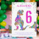 Celebre a garota que ama dinossauros fazendo 6 anos com este T-Rex cor rosa e roxo cor-de-rosa e um belo stegossauro convidando fãs Dino a uma festa de aniversário 6. Personalize este convite psicodélico e colorido Tyrannosaurus e stegossauro adicionando o nome da aniversariante, o número do aniversário e os detalhes da festa e você está preparado para um divertido e cheio de dinossauros rosa, o seu aniversário dino. Todas as espécies de dinossauros são bem-vindas. Idade jurássica pré-histórica Ilustrações do dinossauro, obra de arte original de Catherine Sweetman