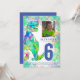 O convite para o modelo de foto da festa de aniversário do dinossauro T-Rex para comemorar seu pequeno T-Rex fazendo seis anos com a festa de aniversário perfeita para o garoto que ama dinossauros. Este T-Rex itinerante convida os fãs de Dino a uma festa de aniversário divertida. Personalize este convite de aniversário azul e verde, cor d'água, com uma foto do aniversariante ou menina, o número de anos e os detalhes da festa, e você está preparado para um divertido e cheio de dinossauros no seu aniversário dino. Todas as espécies de dinossauros são bem-vindas. Arte original única da artista Catherine Sweetman
