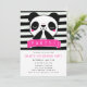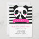 Uma adorável faixa preta e branca com convites de aniversário de panda azulados para meninas. Personalize com os detalhes do seu participante. Visite nossa loja para ver todos os suprimentos de grupos coordenadores neste design + toda nossa coleção de convites.