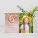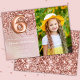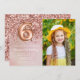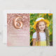 Convite de aniversário rosa de 6 de ouro elegante para uma menina de 6 anos com roteiro elegante escrevendo e balões de folha de papel divertida.