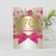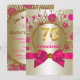 Convite de festa de aniversário de setenta anos cor rosa fúcsia e dourado com pontos brilhantes em azul turquesa e dourado e explosão de estrelas. Este lindo convite de festa de aniversário cor rosa fúcsia e dourado é facilmente personalizado para o seu evento, basta adicionar seus detalhes no estilo de fonte, cor e texto de sua escolha. Este é um design impresso sem jóias reais, brilho, laços, etc.