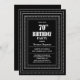 Convide seus amigos e entes queridos para o seu aniversário de 70 com esta moderna festa de aniversário de fronteira preto e branco. A área de texto personalizável neste modelo de convite permite que você inclua facilmente todos os detalhes necessários para sua celebração especial de aniversário, incluindo as informações de data, hora, local e RSVP. Uma variedade de tipos de papel e estilos de canto estão disponíveis para seus convites exclusivos, juntamente com a opção de download se você preferir um formato digital.
