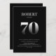 Convide seus amigos e entes queridos para a celebração do seu aniversário de 70 com este convite de aniversário minimalista negro e prateado da sétima edição.