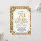 Convite à Celebração de Aniversário de 70 Surpresa. Design elegante em branco e padrão de ouro brilhante. Apresenta uma fonte elegante de script. Envie-me uma mensagem se precisar de mais personalização.