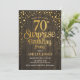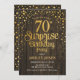 Convite de aniversário de 70 surpresa. Design elegante com padrão de madeira marrom escura e ouro brilhante falso. Possui fonte de script na moda e confetti. Envie-me uma mensagem se precisar de idade personalizada.