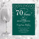 Convite de aniversário de 70 surpresa. Design elegante em verde esmeralda e prata brilhante falso. Apresenta a fonte do script e os diamantes confetti. Saúde para 70 anos! Envie-me uma mensagem se precisar de mais personalização.