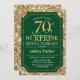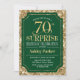 Convite à Celebração de Aniversário de 70 Surpresa. Design elegante em verde-escuro da floresta e padrão de ouro brilhante. Apresenta uma fonte elegante de script. Envie-me uma mensagem se precisar de mais personalização.