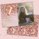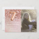 Convite de aniversário rosa de 7 de ouro elegante para uma menina de 7 anos com roteiro elegante escrevendo e balões de folha de papel divertida.