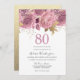 Convite para Festa de Aniversário de 80 anos com Flores Rosa e Dourado
