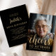 A frente deste convite de 80 de aniversário apresenta a foto do convidado de honra com uma camada de texto dourada. A palavra "torcida" aparece num elegante roteiro de caligrafia dourada, seguido de "até 80 anos" e o nome e aniversário do convidado de honra em sans serif font. Uma tela escura ajuda a tornar o texto pop. Personalize o lado inverso com o nome e os detalhes da parte em um plano de fundo preto. Uma forma excelente de celebrar alguém que está fazendo oitenta anos!