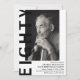 Convite de aniversário de 80 moderno - Design apresenta um fundo branco que pode ser alterado para qualquer cor, uma fotografia de retrato, o texto 'EIGHTY' em caracteres negros e uma modelo de bolsa mensageifesta de aniversario elegante que pode ser facilmente personalizada. Na moda, tendências e perfeito para qualquer idade!