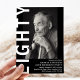 Convite de aniversário de 80 moderno - Design apresenta um fundo preto que pode ser alterado para qualquer cor, uma fotografia de retrato, o texto 'EIGHTY' em letras brancas e em negrito e uma modelo de bolsa mensageifesta de aniversario elegante que pode ser facilmente personalizada. Na moda, tendências e perfeito para qualquer idade!