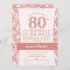 Convite de aniversário de 80 surpresas em branco e rosa. Cartão de convite elegante com ouro de rosa brilhante e diamantes falsos. Design clássico perfeito para uma festa de na moda. Envie-me uma mensagem se precisar de uma idade personalizada.