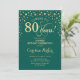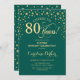 Convite de aniversário de 80 surpresa. Design elegante em verde esmeralda e ouro brilhante. Apresenta a fonte do script e os diamantes confetti. Saúde para 80 anos! Envie-me uma mensagem se precisar de mais personalização.