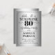 Convite de aniversário de 80 surpresa. Design simples em prata e preto. Apresentando padrão de folha de prata falsa e fonte elegante de script. Celebração surpresa para homem ou mulher. Pode ser personalizado em qualquer idade!