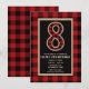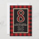 Convites de Festa de Aniversário de 8 anos com Xadrez de Búfalo Preto e Vermelho Rústico.
