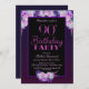 Um 90 preto com convite de aniversário floral roxo e rosa.