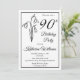 Neve elegante, mês de nascimento, design de "Festa de aniversário 90" floral design com um motif floral de queda de neve com um padrão floral de queda de neve preto e branco atrás.