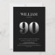 Convide seus amigos e entes queridos para comemorar seu aniversário de 90 com este convite de aniversário minimalista negro e prateado de 90.