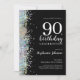 Convites Festa de aniversário de 90 preto brilhante elegant
