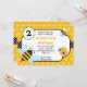 Este adorável convite de aniversário de abelhas apresenta um fundo de colmeia, abelhas adoráveis e o número da idade de sua criança.