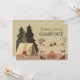 Um convite para uma festa de meninos. A frente do convite apresenta dois jovens campistas assolando cachorros-quentes perto da fogueira, com uma tenda, árvores e filhotes ao fundo. Projetado por Robin simplesmente usando o trabalho de arte por Trina Clark / digiscrapkits.com