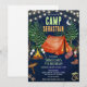 A aventura espera! Celebre seu pequeno explorador com este convite de aniversário de acampamento maravilhosamente detalhado. Um céu noturno naval mágico prepara o cenário com pinheiros altos, uma tenda laranja brilhante, fogueira crepitante com marshmallows assando, lanterna, botas de caminhada, saco de dormir, pegadas de urso e luzes cintilantes — tudo o que uma verdadeira aventura ao ar livre precisa.