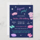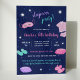 Estes bonitos convites para dormir roxos e azuis são perfeitos para festas de aniversário de sono adolescentes. Personalize-os com seus próprios detalhes e utilize a ferramenta de edição para fazer mais ajustes, como tamanho da fonte, posicionamento e cor.