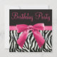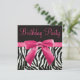 Convites de aniversário personalizados elegantes, perfeitos para mulheres e adolescentes com um lindo padrão de listas de peles negras e brancas, e um arco e uma fita de cor rosa-quente. Estes convites elegantes são decorados de ambos os lados. Menina, chique, moda, convites modernos. Observe que: Todos os convites no Zazzle têm imagens impressas em formato plano. Texto, fonte e cor da fonte são todos personalizáveis. Se precisar de ajuda para personalizar seu produto, entre em contato comigo pela loja e terei todo o prazer em ajudar.