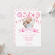 Motivos de aniversário de aquarelas bonitas em cor de coquete rosa, incluindo um chapéu de aniversário móvel e um arco de pré-filmagem para ajustado da foto de sua escolha. Sinta-se livre para mover os elementos para criar uma composição de layout exclusiva para o seu convite de aniversário bebê!