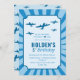 Personalize este convite de aniversário divertido com os detalhes da sua festa. Ele apresenta aviões de combate e um fundo de explosão estelar para a festa de aniversário temática perfeita do avião.