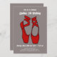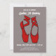 Este clássico, simples, mas elegante design, mostra as pontas de balé dos dedos pontiagudas em vermelho com um plano de fundo elogiado. Um convite bonito para sua bailarina favorita. Todo texto pode ser personalizado de acordo com o seu gosto.
