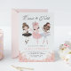 Dance e gira para a aniversariante! Convide familiares e amigos para o seu evento com este convite de aniversário personalizável. Apresenta bailarinas de meninas bonito em vestidos pretos, cor-de-rosa e brancos com brilho de ouro falso e sotaques florais. Personalize este convite de aniversário do Baller adicionando seus próprios detalhes. Este convite de bailarina é perfeito para aniversários e festas balés.