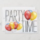 Um convite de festas de aniversário fofo. O lado frontal tem balões e diz 'Hora do Partido'. O verso tem os detalhes da festa.