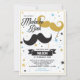 Festa de aniversário de Bassos Bastardo Faux Glitter - É o aniversário do seu homenzinho. Celebrar com um cesto de bigode. Este convite estava certo sob nossos narizes o tempo todo. Apresentando bigodes em fundo festivo em tons de azul, ouro e preto. Os detalhes de brilho são falsa, não é usada nenhuma falha real no design. Este convite "fan-tash-tic" certamente crescerá em você, já que uma extravagância de aniversário está a caminho!
