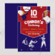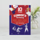 Bata em casa com este convite de aniversário esportivo! Perfeito para o pequeno enrolador na sua vida, este design apresenta uma ilustração divertida em vermelho e azul, perfeita para uma festa de aniversário temática de baseball. Junte sua equipe para uma celebração cheia de diversão, jogos e animação de aniversário!