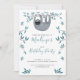 Lingueira branca e branca, preguiçosa com preguiça neutra do ponto de vista do gênero, convite de aniversário de criança. A parte de trás apresenta um padrão de preguiça correspondente para uma ajuda extra da cutena. Personalize o texto para se adequar à sua celebração. Arte original de Nic Squirrell