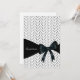 Convite de festa de aniversário ou evento com bolinhas pretas e brancas e laço preto. Este modelo de convite funciona bem para uma festa de aniversário, coquetel, festa de feriado, festa de aposentadoria, festa de formatura e qualquer outra ocasião especial. Personalize com sua escolha de estilo de fonte e cor da fonte, e cor de fundo.