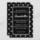 Este convite de aniversário personalizado apresenta um padrão de bolinhas estranho. As bolinhas brancas são colocadas sobre um fundo preto. Uma área preta no centro contém as informações da parte. O nome do convidado de honra é impresso em uma fonte elegante.
