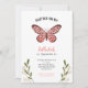 Convite de aniversário temático da borboleta branca com ilustração de uma borboleta cor-de-rosa com folhagem de ouro verde e falso na parte inferior. Perfeito para a festa de aniversário branca de uma garota!