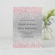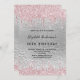 Um convite moderno, na moda e glamouroso para a festa de aniversário (ou qualquer idade) de uma mulher. Um fundo metálico prateado com aspecto elegante com um brilho brilhante, cor-de-rosa, pingando tinta. O nome é escrito com um script estilo preto moderno, escrito à mão. Personalize e adicione um nome, idade e detalhes da festa.