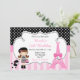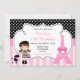 Este convite de aniversário apresenta uma adorável garota morena em uma armação francesa e a torre de eiffel. Isto é perfeito para uma festa de aniversário. Trabalho de arte por Grafos e MyClipArtStore