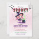 Nossa design apresenta uma linda bruxa de desenho com cabelo rosa e um vestido roxo mexendo com um caldeirão de líquido verde. Ela está cercada por estrelas e morcegos. O fundo é rosa e branco. Personalize facilmente todo o texto, para se adequar a qualquer idade da criança Se você quiser que essas designs tenham um produto mais compatível, entre em contato comigo