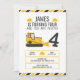 Um convite fantástico e divertido para crianças festas de aniversário com um tema de buldozer de construção. O convite de aniversário de buldôzer de construção infantil permite que todos os elementos de texto sejam personalizados. Isso inclui o grande número "4" em frente ao buldozer. Inclui também três duros de imagens que podem ser movidas e ajustadas em tamanho, se necessário. Se você for criança em carros, caminhões e veículos de todo tipo, esta festa de aniversário de escavadoras será o convite perfeito para uma festa de aniversário do tema da construção.